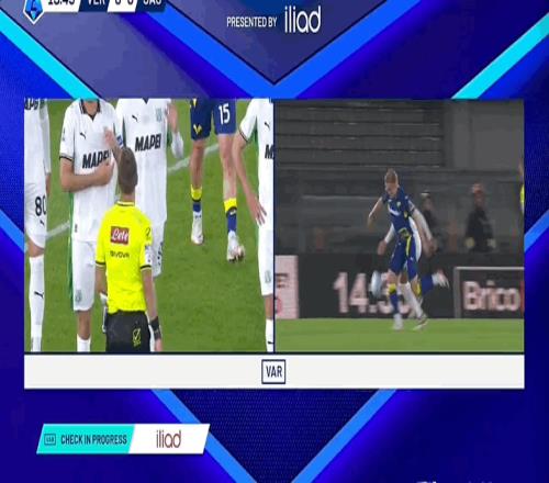 71’法德拉造点,皮纳蒙蒂主罚被扑补射命中,维罗纳0-1萨索洛