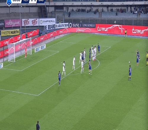 36’塞尔达任意球直接打门,萨索洛门将将球没收