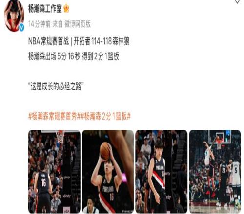 本场比赛,中国球员杨瀚森迎来了NBA生涯的常规赛首秀,他替补出场5分16秒,砍下2分1篮板。