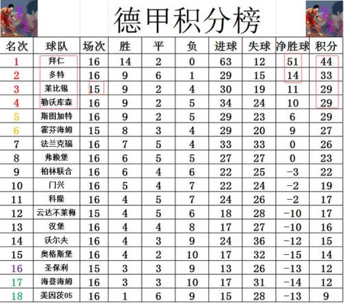 德甲最新积分战报大结局!三叉戟造7球拜仁狂胜领先多特11分